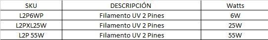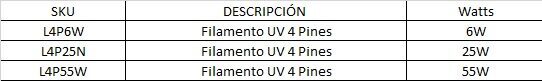 6W-25W-55W / 4 PINES Filamentos UV Semi Industrial